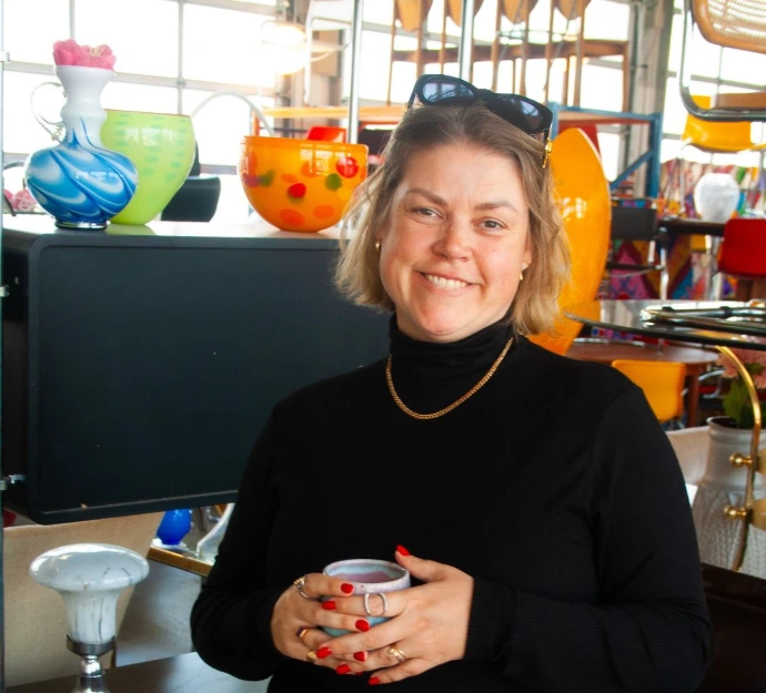 Signe spreder altid god energi, hvad enten hun tager flotte billeder, sørger for at showroomet står knivskarpt eller hjælper kunder med at finde deres næste vintagefund. Hun har det dejligste smil og flotteste outfits.